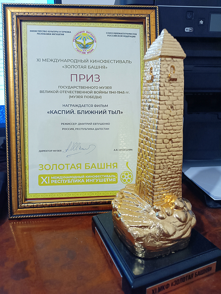 Документальный фильм "Каспий. Ближний тыл" в числе победителей! Приз Государственного музея Великой отечественной войны 1941 - 1945 гг. (МУЗЕЯ ПОБЕДЫ) и диплом режиссеру Дмитрию Евтушенко, получил руководитель одноименного Медиапроекта, председатель Дагестанского отделения Союза кинематографистов России Александр Евтушенко.