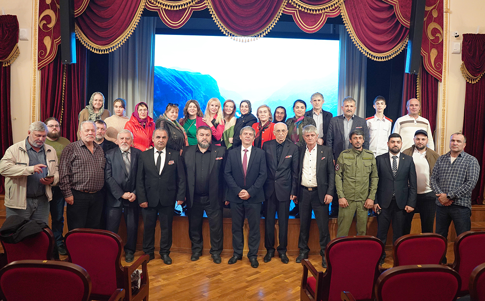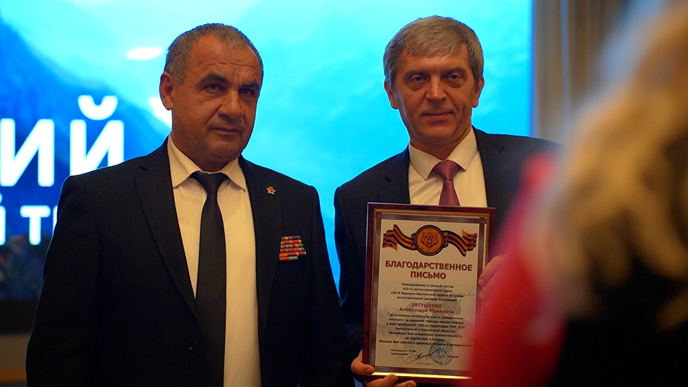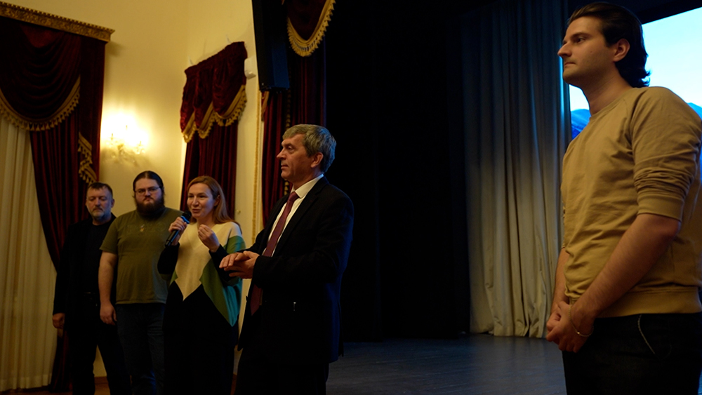 В зале присутствовали приглашенные участники СВО, герои фильма, творческие деятели нашей республики, студенты и, конечно, члены творческой бригады под руководством председателя Отделения Александра Евтушенко.