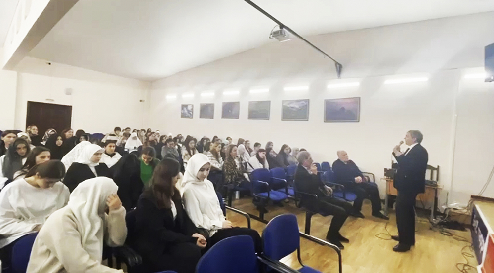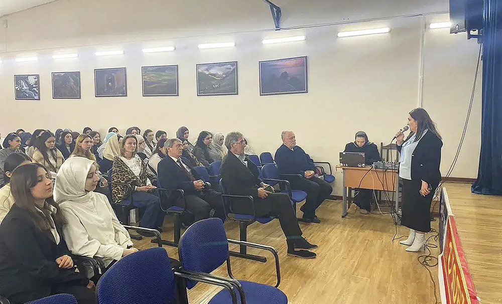 Открывая мероприятие, с приветственным словом к собравшимся обратилась заведующая педагогическим отделением колледжа Абакарова Наида Халиковна: «Здесь в зале студенты педагогического отделения, и я всегда говорю, что они учатся ни ради диплома, не только для себя, они учатся ради тех детей, которые к ним придут и будут смотреть им в глаза, внимать и запоминать всё, что им рассказывают учителя. Это тоже большой вклад в будущее нашей страны». Она также представила гостей: