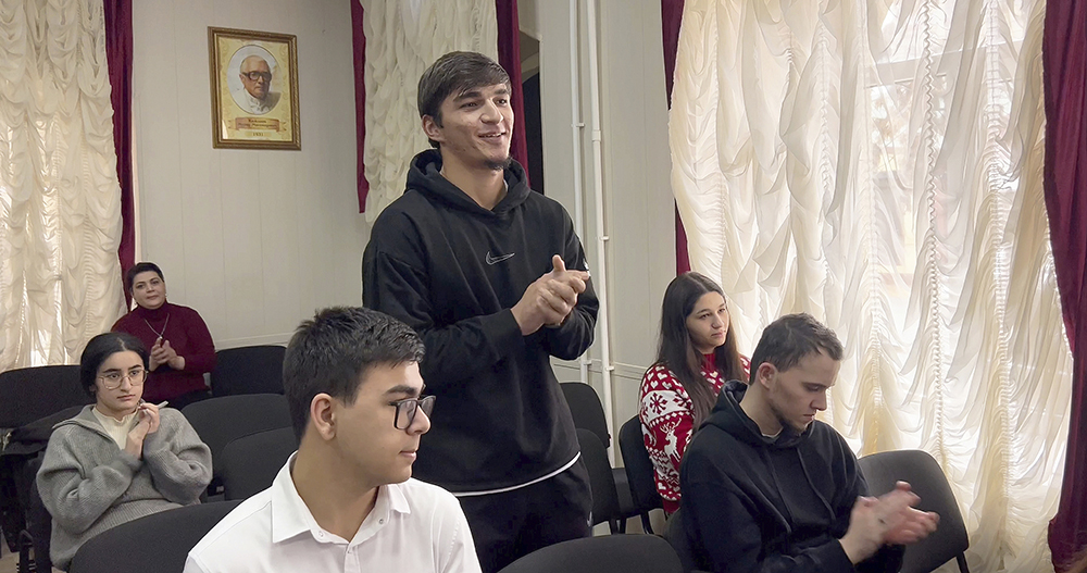 Хан Мирзаханович Баширов рассказал студентам своё мнение о поддержке фронта: «Вы увидели в фильме, как дагестанцы сегодня поддерживают наших бойцов. Такое было и в годы Великой Отечественной войны, и в 99-м — в Ботлихе, Новолаке, да и раньше в истории Дагестана. Только объединившись, мы становимся сильнее. Вчера был значимый день для России – День Героев Отечества. А сколько Героев России - участников СВО сегодня уже из нашей республики! Мы должны помнить их имена и гордиться подвигами своих земляков».