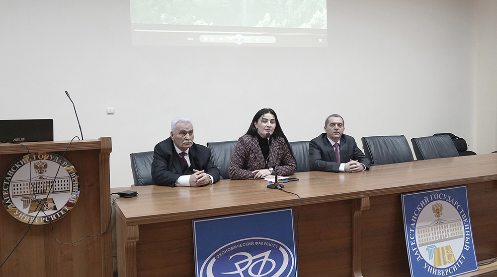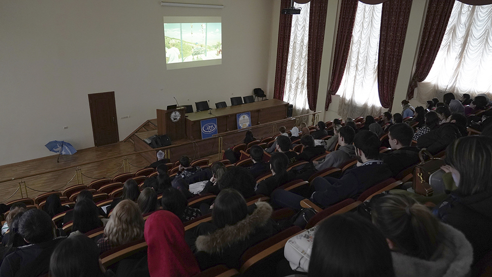 Перед началом просмотра начальник Отдела по воспитательной и социальной работе ДГУ Магомедова Патимат Джаватхановна представила авторов фильма - Сулейманова Магомеда Мирзаевича и Евтушенко Александра Юрьевича, которые в свою очередь поделились информацией о работе Отделения Союза и работе над фильмом.