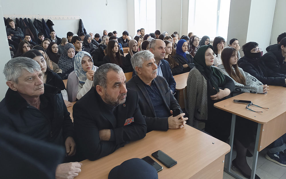 Муталим Магомедович поделился со студентами своим убеждением: «Сила нашего народа — в единстве и памяти. Мы помним, как вставали всем миром в трудные времена, и видим, как это же единство сегодня работает здесь, у нас в тылу. Ваш колледж помогал в сборе гуманитарных грузов с самого начала СВО, сейчас у вас налажено плетение масксетей — очень нужное и хорошее дело. И ваша учеба, желание помогать и быть полезным — это та основа, на которой держится наша большая страна. И мы обязательно победим».